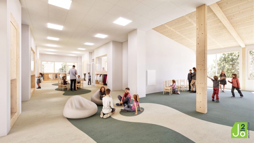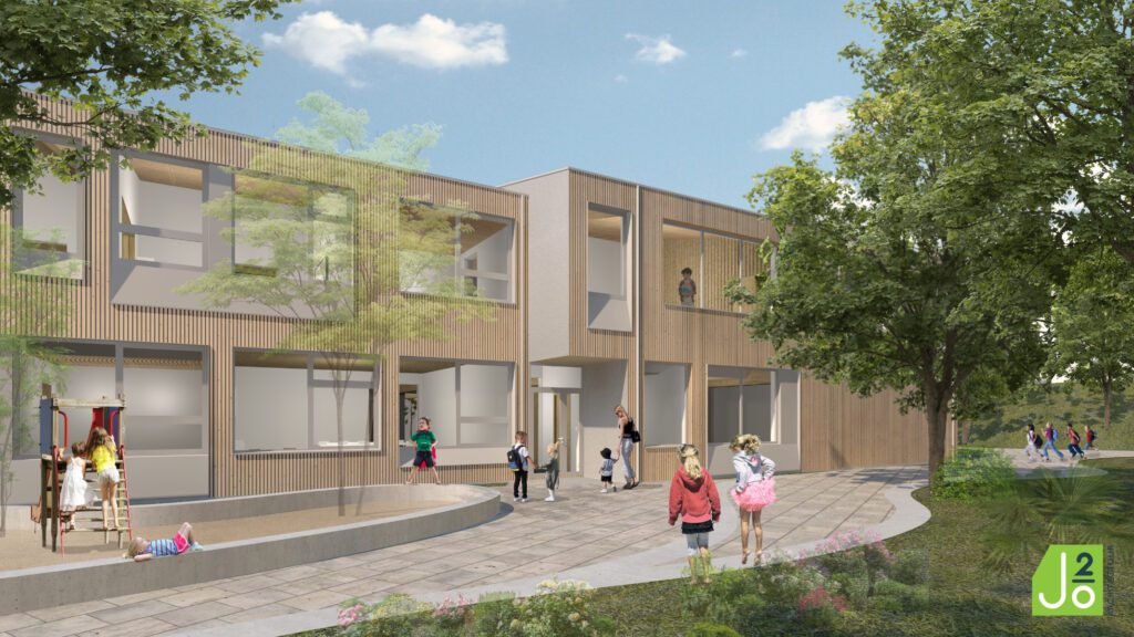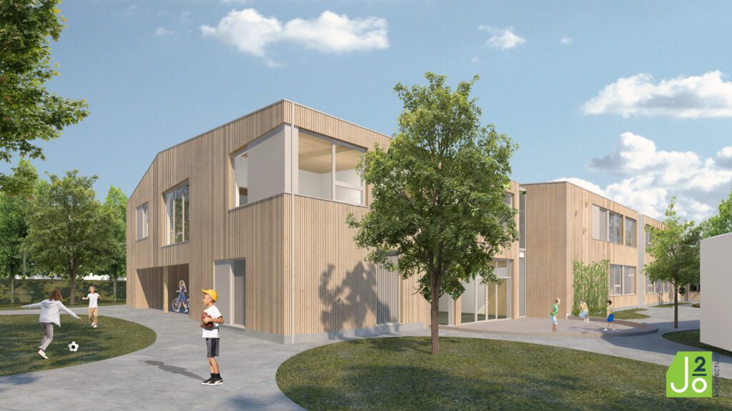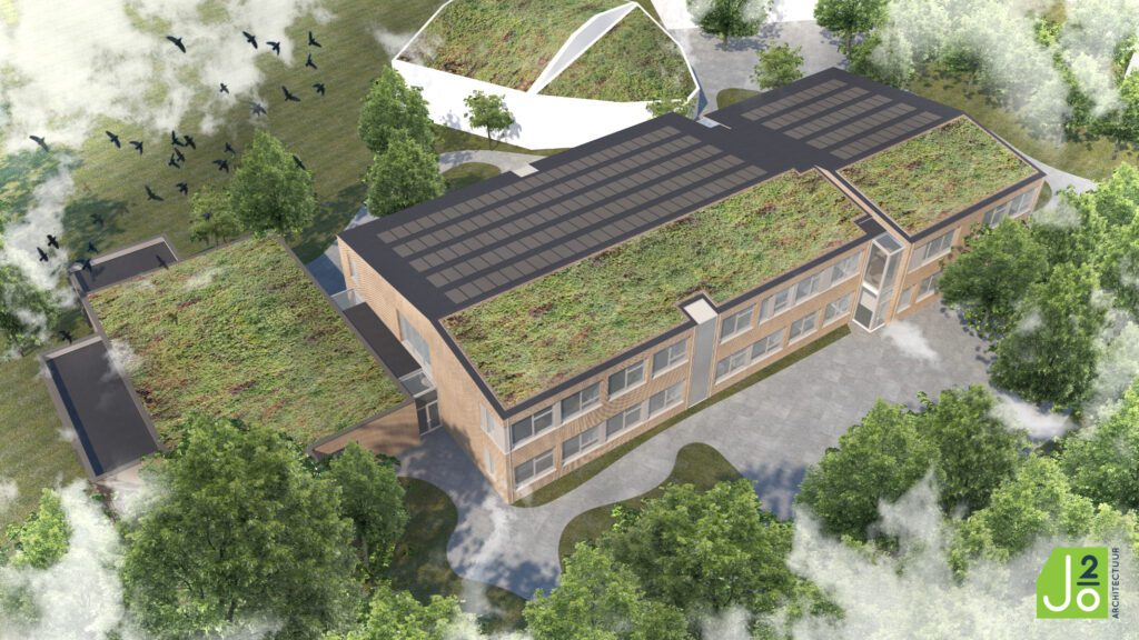 Zoals je ziet, blijft het lage deel van het huidige schoolgebouw aan de Willem de Zwijgerlaan bestaan. Dit deel wordt volledig gerenoveerd en zal uiteindelijk in gebruik genomen worden door de Kinderopvang Partou.