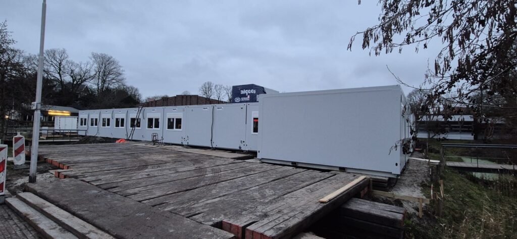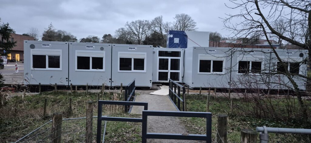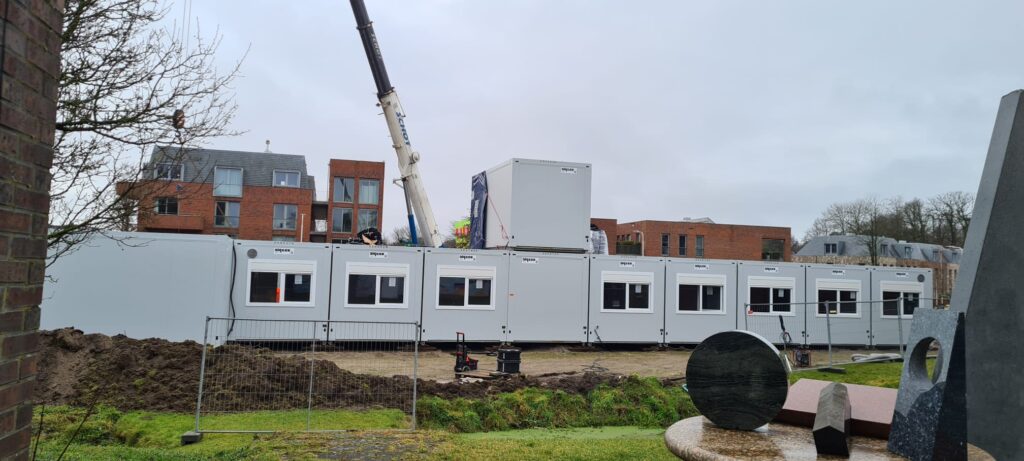 Nu echt! Hieronder de eerste beelden van de plaatsing van de tijdelijke huisvesting. Oftewel; het is nu echt begonnen!